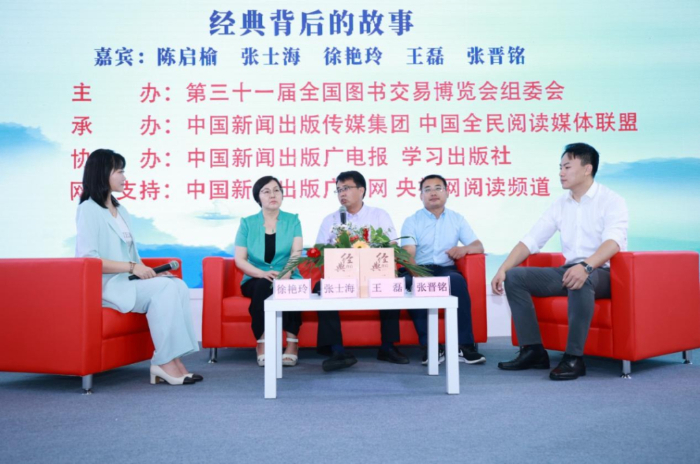 全民閱讀“紅沙發(fā)”系列訪談活動上,學習出版社介紹《經典背后》的出版故事。組委會供圖