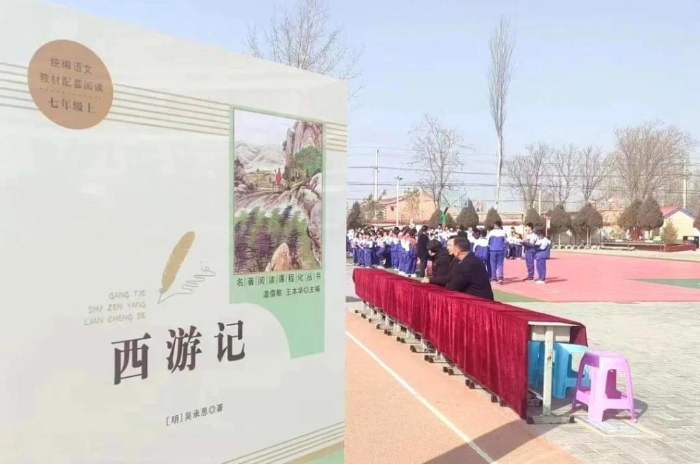 寧夏靈武市狼皮子梁學校舉辦以閱讀為主題的開學典禮。受訪者供圖