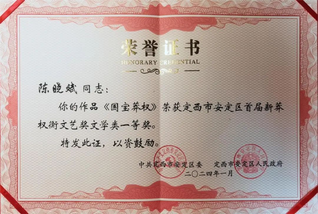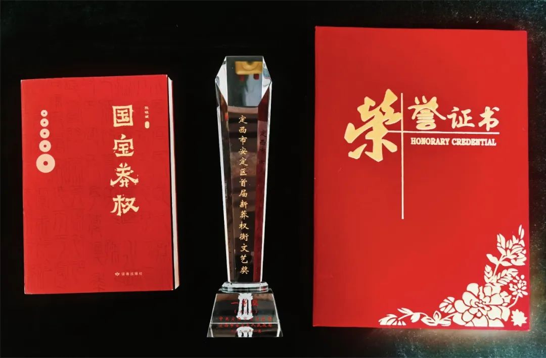 1月21日晚,由定西市安定區(qū)委、區(qū)政府主辦的首屆“新莽權(quán)衡文藝獎”頒獎晚會在隴中許鐵堂秦腔劇院隆重舉行。讀者出版社紀(jì)實文學(xué)作品《國寶莽權(quán)》榮獲文學(xué)類一等獎。