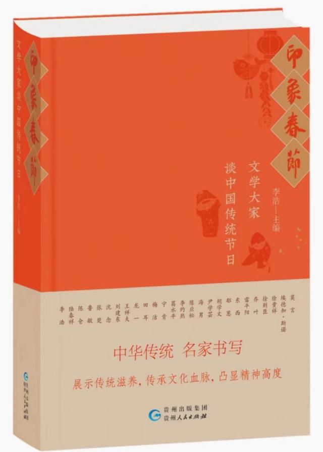 蛟龍得水,迎春納福,龍馬精神,福澤綿長……東西南北中,長城內(nèi)外里,各種溫暖人心的新春祝福傳遞著甲辰龍年的溫馨年味。春節(jié)不但是一個溫暖的文化符號,更是中華兒女心中牽掛的“精神家園”。由作家李浩主編的文學作品集《印象春節(jié):文學大家談中國傳統(tǒng)節(jié)日》(貴州人民出版社2023年12月出版),收錄26位當代作家關(guān)于春節(jié)的文學作品。翻開中國紅封面的作品集,宛如推開了一扇扇歲月的窗口,繽紛的春節(jié)記憶帶著情感的溫度縈繞心間;又似相遇一個個作家面帶春風的節(jié)日祝賀與問候,莫言、徐貴祥、徐則臣、東西、張楚、魯敏、寧肯、陸春祥、陳應(yīng)松等從歲月的吉光片羽里,悉心采擷著有關(guān)“春節(jié)”的溫暖記憶,用樸實真切的語言,精心描摹此去經(jīng)年人生中的“過年”場景,活色生香的年味兒彌散在讀者的眼前,共同呈現(xiàn)春節(jié)與家鄉(xiāng)、親人和故土之間親密的血脈相連。