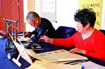 市民在社區(qū)文化中心練習書法。光明日報記者 郭俊鋒攝