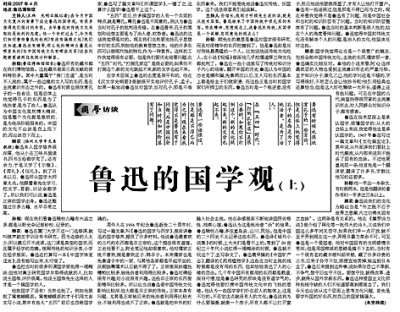 2007年5月31日《光明日報》國學(xué)版文章《魯迅的國學(xué)觀(上)》