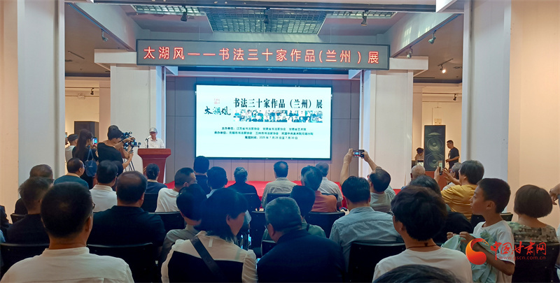 中國(guó)甘肅網(wǎng)7月26日訊(西北角·中國(guó)甘肅網(wǎng)記者 宋芳科)7月26日下午,由江蘇省書(shū)協(xié)、甘肅省書(shū)協(xié)、甘肅省藝術(shù)館主辦,無(wú)錫市書(shū)協(xié)、蘭州市書(shū)協(xié)、民盟中央美術(shù)院無(wú)錫分院承辦的太湖風(fēng)·書(shū)法三十家作作品(蘭州)展在甘肅省藝術(shù)館揭幕,展覽將持續(xù)至7月30日。