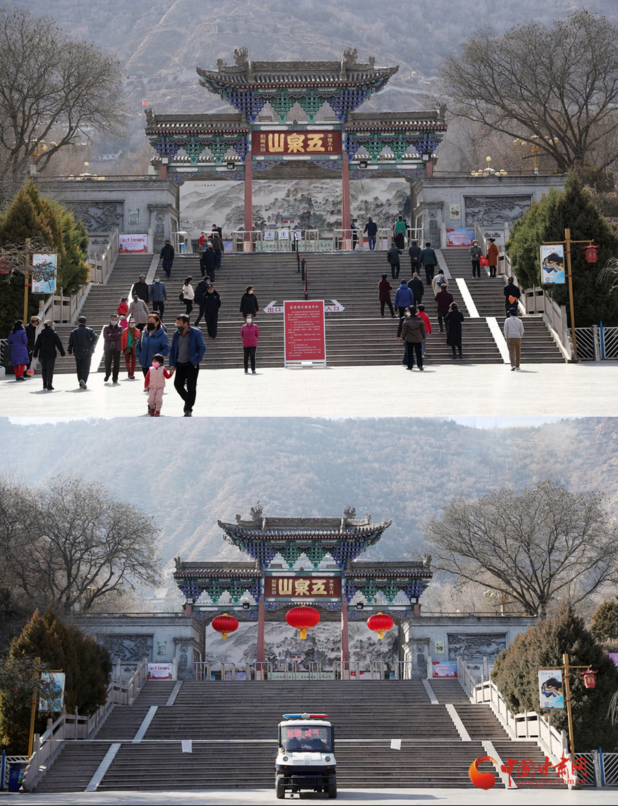 3月3日(圖上)與2月4日(圖下)拍攝的蘭州五泉山公園