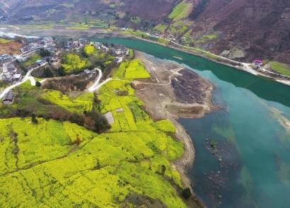 近日,讓水河迎來一年中最美的季節(jié)。逶迤的青山、彎曲的河道,被大片大片盛開的油菜花渲染成一幅春光畫卷。澄碧的江水倒映著近水的村莊和連綿的群山,金黃的油菜花、潔白的櫻桃花、粉紅的桃花相互輝映,偶爾一條小船劃入河中,蕩起層層漣漪……