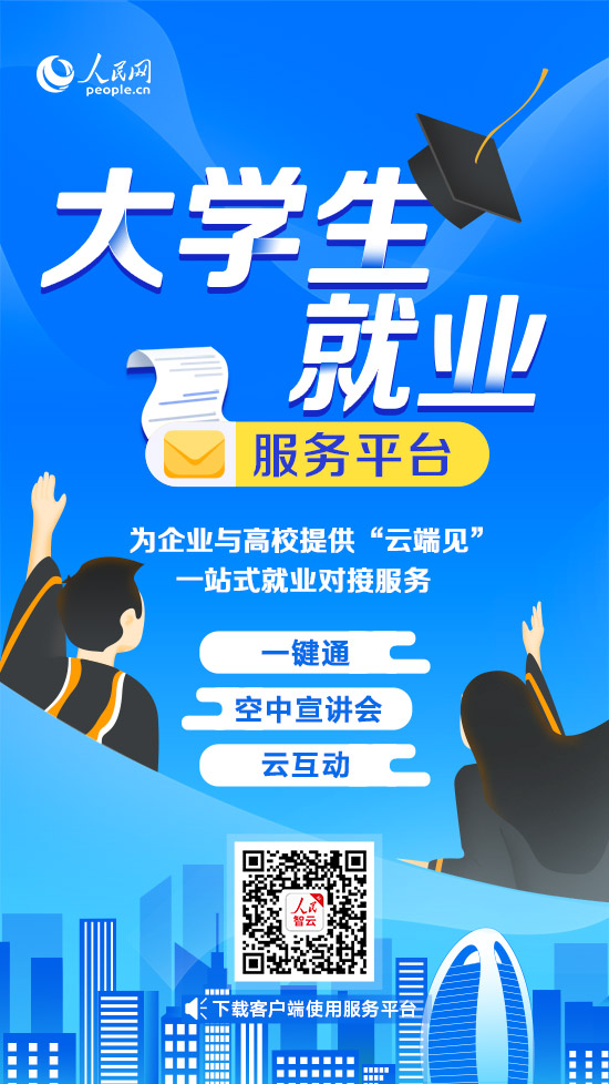 掃描二維碼下載人民智云客戶端,打開“校招”頻道,使用大學(xué)生就業(yè)服務(wù)平臺
