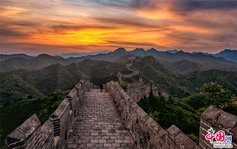 金山嶺長城,仿佛一部鴻篇巨制,光芒萬丈的日出中巨龍飛舞。