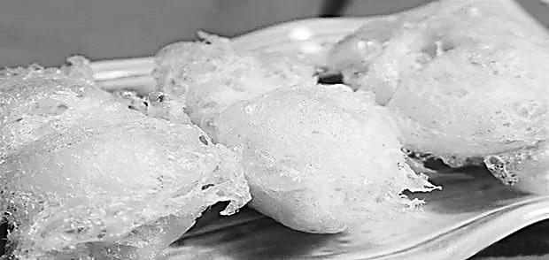 泡兒油糕因其色澤黃亮,表面膨松如輕紗,結(jié)有密密麻麻的珍珠小泡,故而得名。