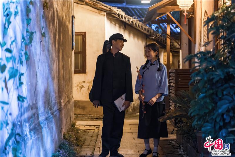 街巷里的年輕演員們于夜色闌珊中演繹著古鎮(zhèn)之風華正茂。