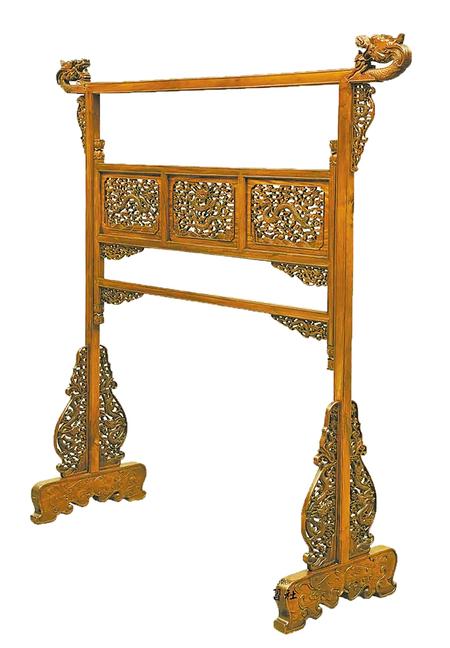 雕花衣架傳世實(shí)物多見(jiàn),一般在搭腦之下會(huì)再加一個(gè)裝飾構(gòu)件,用透雕或攢接、斗簇等方法造成花板,即北京匠師所謂的“中牌子”。