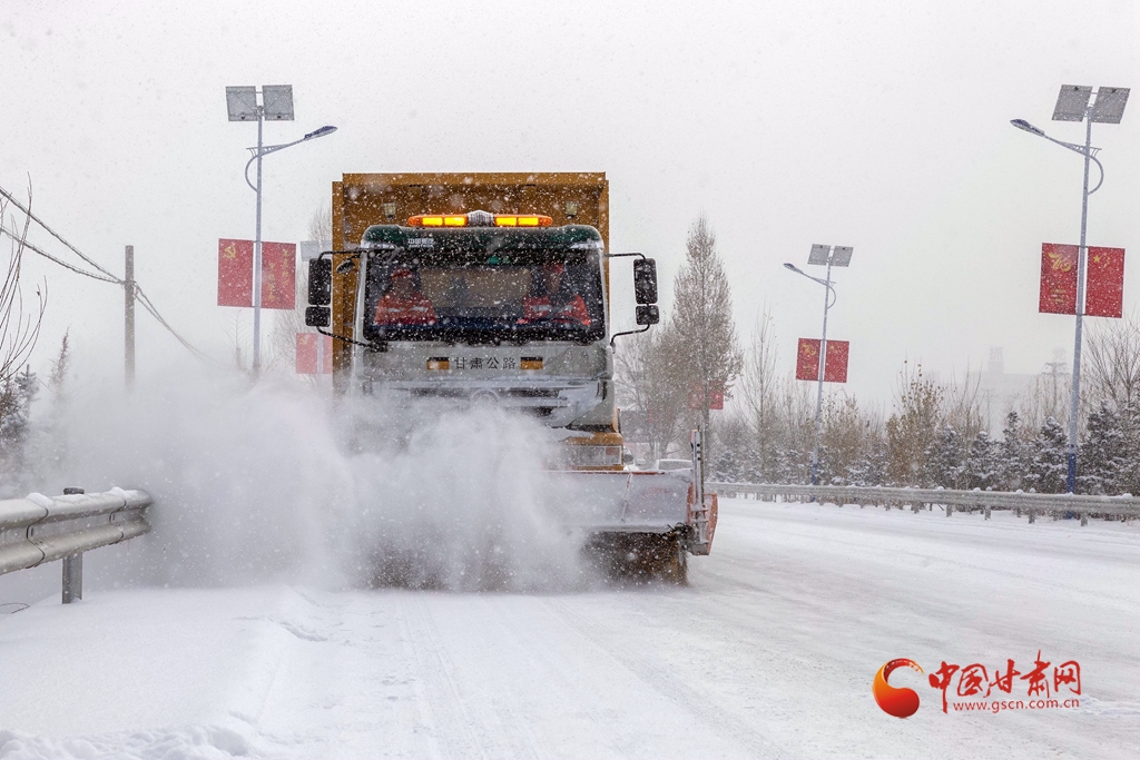 12月12日,甘肅省張掖公路局除雪車輛在國(guó)道227線進(jìn)行除雪作業(yè)。