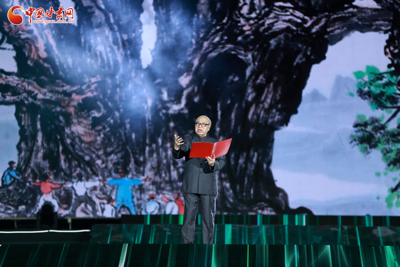 開(kāi)幕式之后的“水墨關(guān)山·槐蔭天下”晚會(huì),以“黃·紅·綠”三色歷史篇章新理念,展現(xiàn)平?jīng)鰷嫔>拮兊臍v史發(fā)展新格局。晚會(huì)以童謠《大槐樹(shù)謠》開(kāi)場(chǎng),展現(xiàn)了屹立于崇信山坳中的大槐樹(shù),歷經(jīng)3200歲風(fēng)雨,矗立成為民族精神的象征。非遺表演唱《弦子腔》+《崇信民歌》展現(xiàn)了崇信人民延續(xù)農(nóng)業(yè)生態(tài)精神,演繹對(duì)真善美的追求。還有書(shū)畫(huà)頻道的書(shū)畫(huà)家們現(xiàn)場(chǎng)通力合作,激情創(chuàng)作,專門(mén)為崇信人民創(chuàng)作了兩幅丈二畫(huà)作——《雄峙千秋》《公劉與崇信》,為本場(chǎng)晚會(huì)添色添彩。
