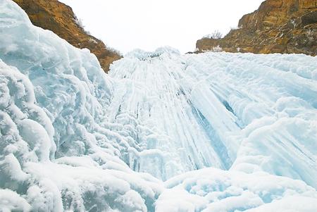 往日飛流直下的山泉瀑布,在冬日里幻化成一排排幾十米寬的銀瀑,從崖壁上垂瀉而下。山谷下,石壁間,清一色的玉白,宛如一座巨大的冰簾,順著崖壁的走勢(shì),或凸出或凹進(jìn),層層疊疊將整個(gè)峽谷環(huán)抱起來。冰瀑、冰簾、冰柱、冰舌,有的相銜相連,有的各自為政,交替排列。如雕似塑,似瑪瑙,像琉璃,晶瑩透亮。冰下暗流涌動(dòng),嘩嘩的水聲,由高到低在冰下輕響。一時(shí)間,仿佛置身于潔白無瑕的童話世界。朋友不住地贊嘆:“這才是真正的冰清玉潔!”