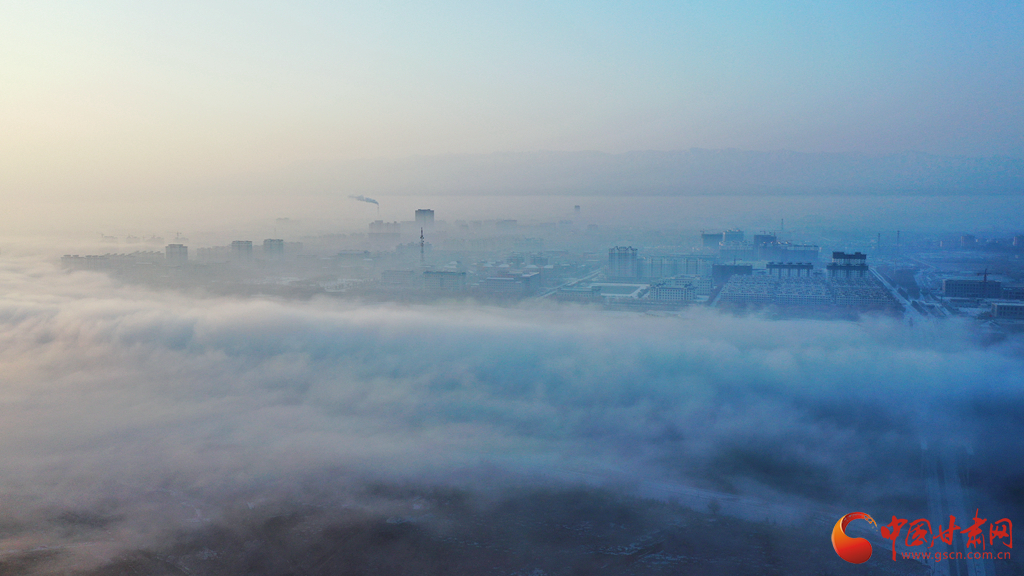 張掖市高臺(tái)縣黑河國(guó)家城市濕地公園上空的云海景觀(guān)。
