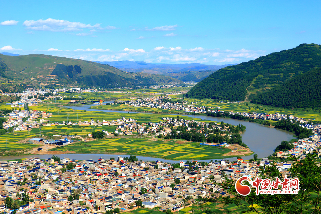 盛夏時(shí)節(jié),岷縣十里鎮(zhèn)洮河兩岸的油菜花競(jìng)相綻放,與民居、山川、林地、豐收在望的各類(lèi)中藥材相映,構(gòu)成了一幅生態(tài)宜居的田園畫(huà)卷,美不勝收。