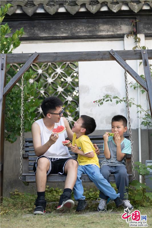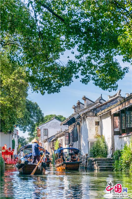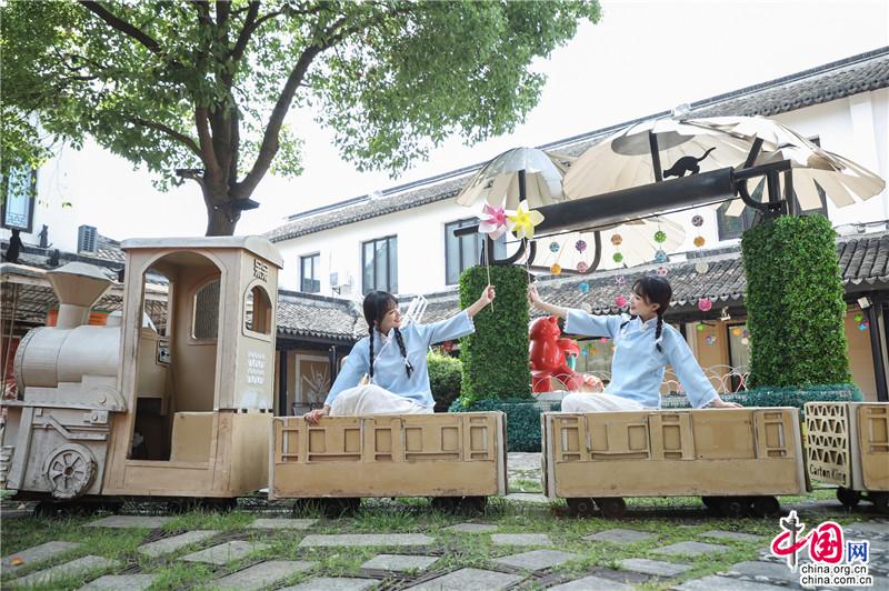 夏日遲遲至,古鎮(zhèn)緩緩行。坐一趟手搖船,穿行在23°的水巷,看陽光透過樹影落在水面上的斑駁,聽搖櫓聲聲撥動碧水的悠然,悄然經(jīng)過匆匆那年。赴一場紙箱王之約,穿梭在紙藝王國,吃一頓盈滿時光的紙上美食。坐上紙做的小火車放飛夢想,在紙箱王古郵局描繪出未來的藍圖。行走在貞豐文化街上,看貞豐十二坊的匠人匠心,觀水鄉(xiāng)周莊的人間煙火。走累了便去蘇繡藝舍感受蘇繡的獨特魅力,到爐韻沉香研習(xí)香道茶藝……一盞清茶一爐香,一衣帶水歸故鄉(xiāng)。