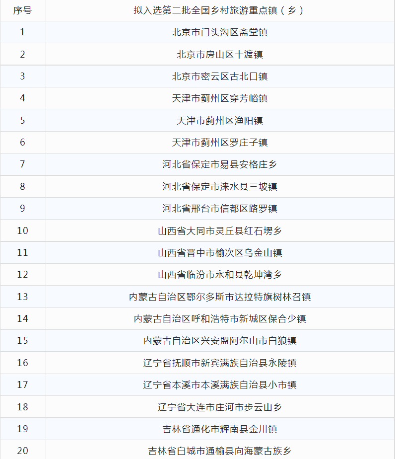 第二批全國(guó)鄉(xiāng)村旅游重點(diǎn)鎮(zhèn)(鄉(xiāng))名單
