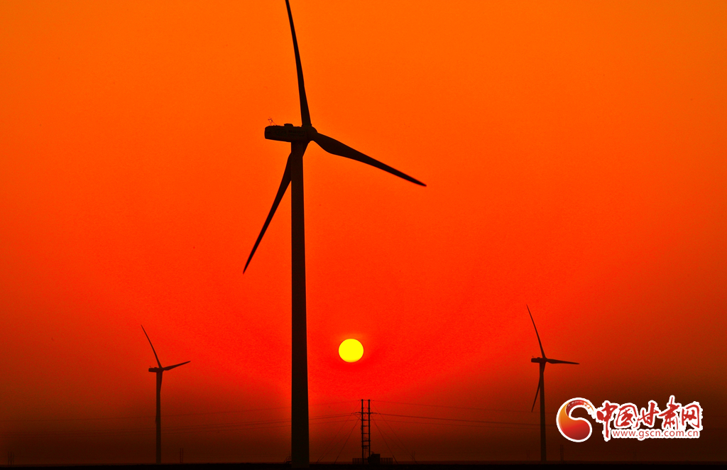 11月17日,甘肅省張掖市甘州區(qū)平山湖蒙古族鄉(xiāng)的草原上,龍源電力甘肅平山湖風(fēng)電場66臺風(fēng)電機組高高聳立,碩大的風(fēng)輪迎風(fēng)不息,與晚霞相映成景。