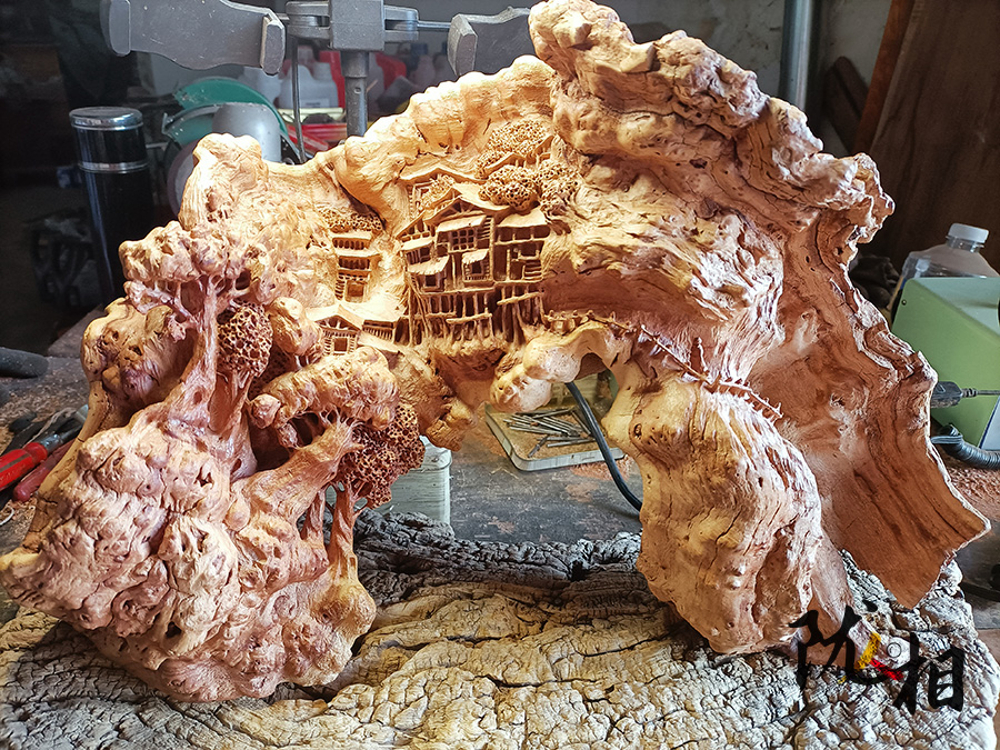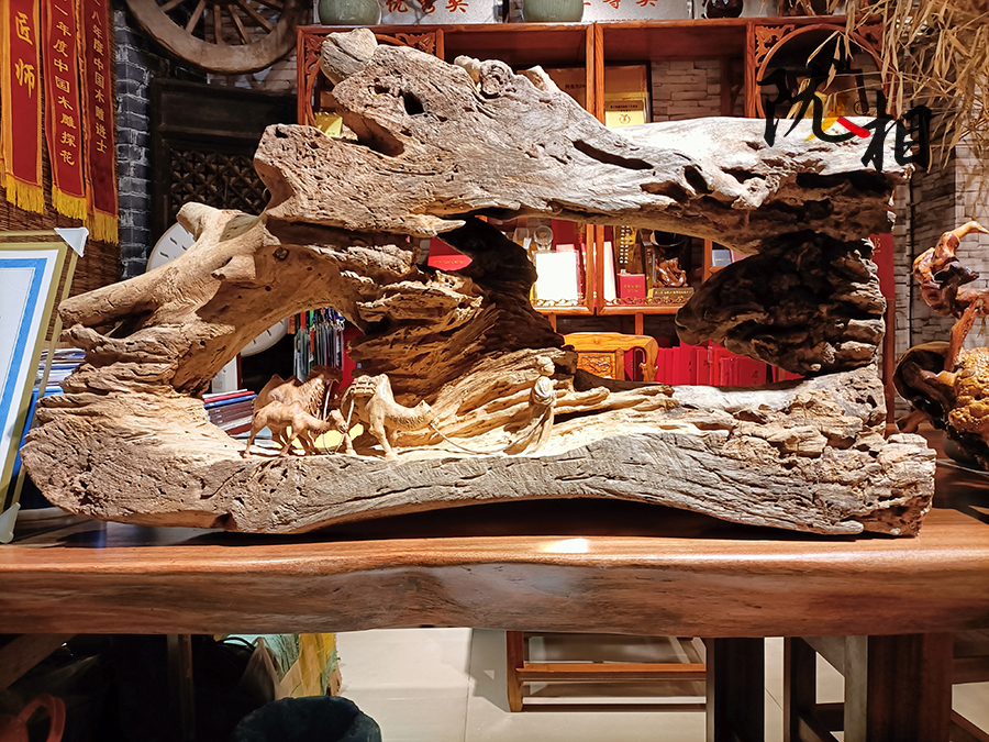 俗話說“朽木不可雕”,但經(jīng)根雕藝人甘博巧手雕琢,便會枯木逢春。