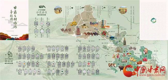 據(jù)了解,為了深入推進文旅市場復(fù)蘇百日攻堅行動,加強產(chǎn)品開發(fā)供給,促進鄉(xiāng)村旅游升溫,省文旅廳于12月13日發(fā)布了2022版甘肅鄉(xiāng)村旅游手繪圖。手繪圖以“相約隴原促振興·富了口袋富腦袋”為主題,對2022年創(chuàng)建的6個鄉(xiāng)村旅游示范縣,60個文旅振興鄉(xiāng)村樣板村開發(fā)設(shè)計了電子“二維碼”,設(shè)置了甘肅省鄉(xiāng)村旅游60條四季精品線路,幫助游客品味鄉(xiāng)村風情、感知鄉(xiāng)村文化、體驗鄉(xiāng)村魅力,進一步展示甘肅鄉(xiāng)村旅游新形象、擴大鄉(xiāng)村旅游影響力,做亮“隴上鄉(xiāng)遇”鄉(xiāng)村旅游品牌,打造“隴上鄉(xiāng)遇”鄉(xiāng)村旅游全景圖。
