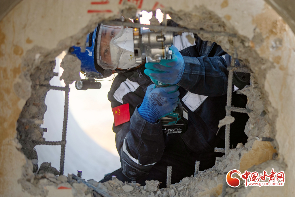 培訓(xùn)隊員正在開展狹小空間破拆訓(xùn)練