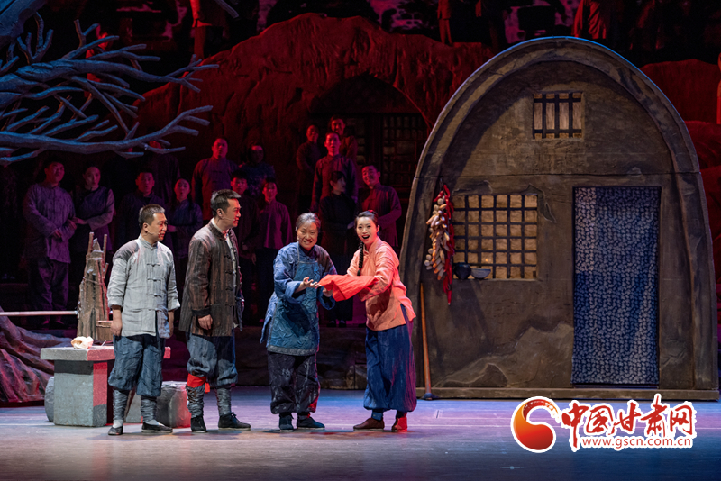 值得一提的是,全劇以隴東民歌為音樂基調(diào),強調(diào)質(zhì)樸、厚重,意在突顯地域的、民族的特色。交響樂隊中增加板胡、嗩吶、琵琶、大鼓等特色民族樂器。此外,在舞美上,采用虛實結(jié)合的手法,隴東黃土塬特定的地貌、獨特的地坑窯洞將會在舞臺上明確地展現(xiàn)給觀眾,大的背景舞美強調(diào)“實”,黃土塬,窯洞等整體構(gòu)成隴東黃土塬特有的地貌和農(nóng)家。藥店、團部、山道等則“虛”化,虛實結(jié)合寫意式地將觀眾帶回那個年代。(甘肅省歌劇院供圖)