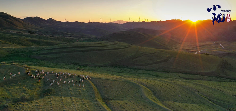 極目遠(yuǎn)望,隨著山坡緩緩蔓延開(kāi)來(lái)的草原,被溫柔的落日余暉浸染,變得美不勝收,盡收眼底。