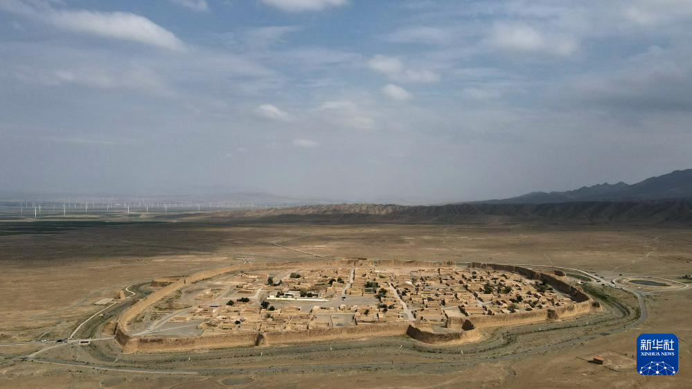 這是位于甘肅省白銀市景泰縣寺灘鄉(xiāng)的永泰古城。永泰古城始建于明萬歷年間,為當(dāng)時的軍事要塞,因形似金龜,又名“永泰龜城”。古城城圍周長1.7公里,高12米,2006年被命名為全國重點文物保護(hù)單位(7月11日攝,無人機(jī)照片)。新華社記者 方欣 攝
