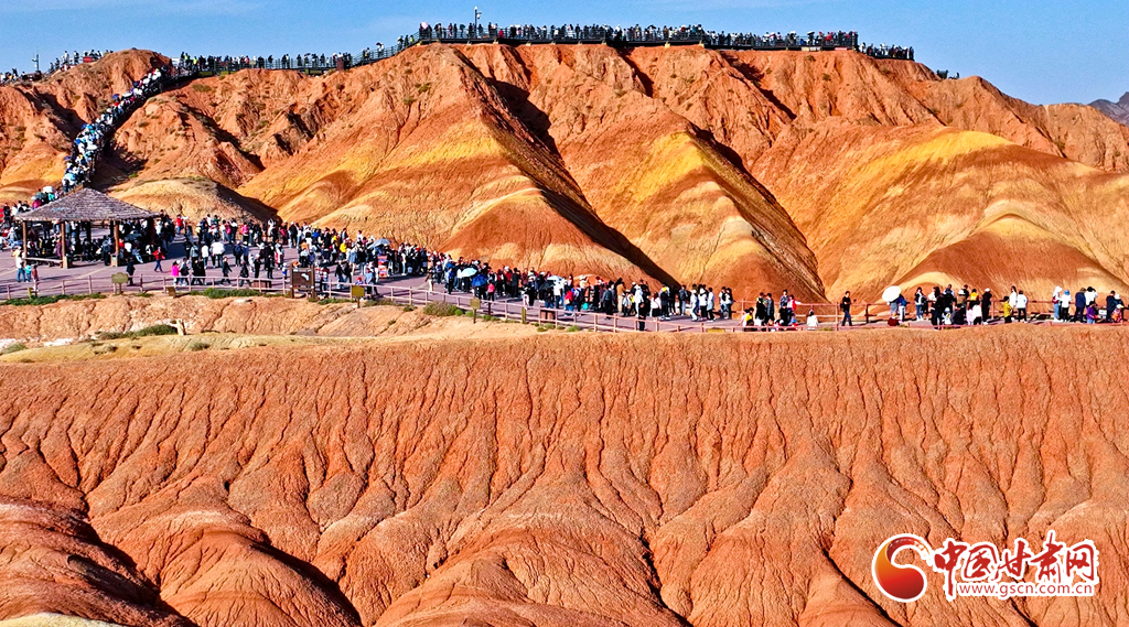 9月30日,甘肅張掖七彩丹霞景區(qū)內(nèi)人頭攢動,全國各地的游客紛至沓來,欣賞獨特的丹霞地貌,領略西北壯美景色。