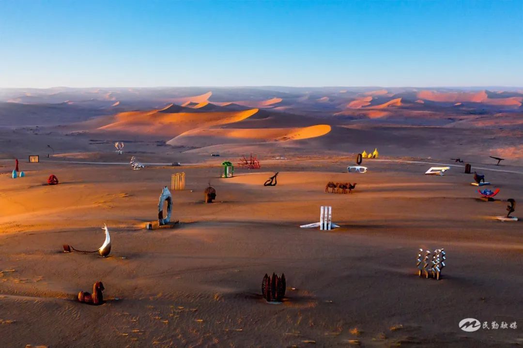 民勤蘇武沙漠景區(qū)絕對(duì)是網(wǎng)紅般的存在。刷屏各平臺(tái)它已成為??停衬袼車?guó)際創(chuàng)作營(yíng)是大家最愛(ài)的拍照打卡地,132座不同材質(zhì)、不同風(fēng)格的藝術(shù)佳作,如一顆顆璀璨明珠飄落瀚海,與藍(lán)天白云、金色大漠完美融合、相映成趣,超級(jí)出片。