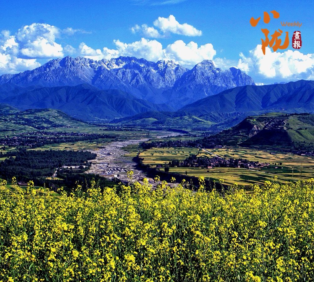 百里平川襯托著綿延群山,一邊是麥?zhǔn)蝻h香的一個(gè)個(gè)綠色盆地,一邊是披蒼著翠的太子山脈。