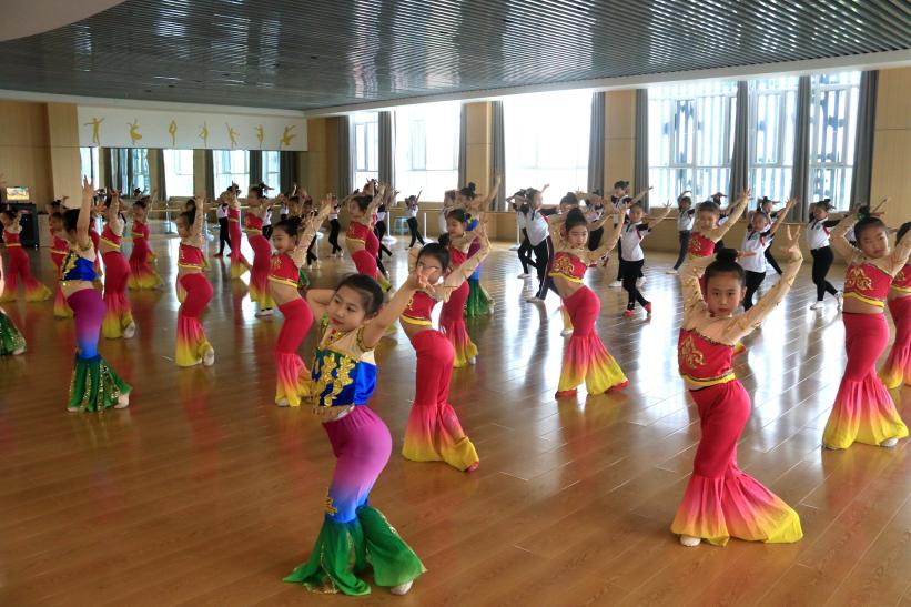 敦煌市西關(guān)小學(xué)舞蹈社團的學(xué)生練習(xí)敦煌舞。張曉亮 攝