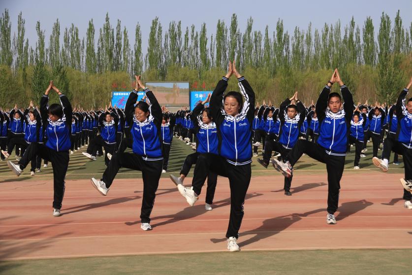 敦煌中學(xué)學(xué)生在操場做敦煌舞課間操。張曉亮 攝