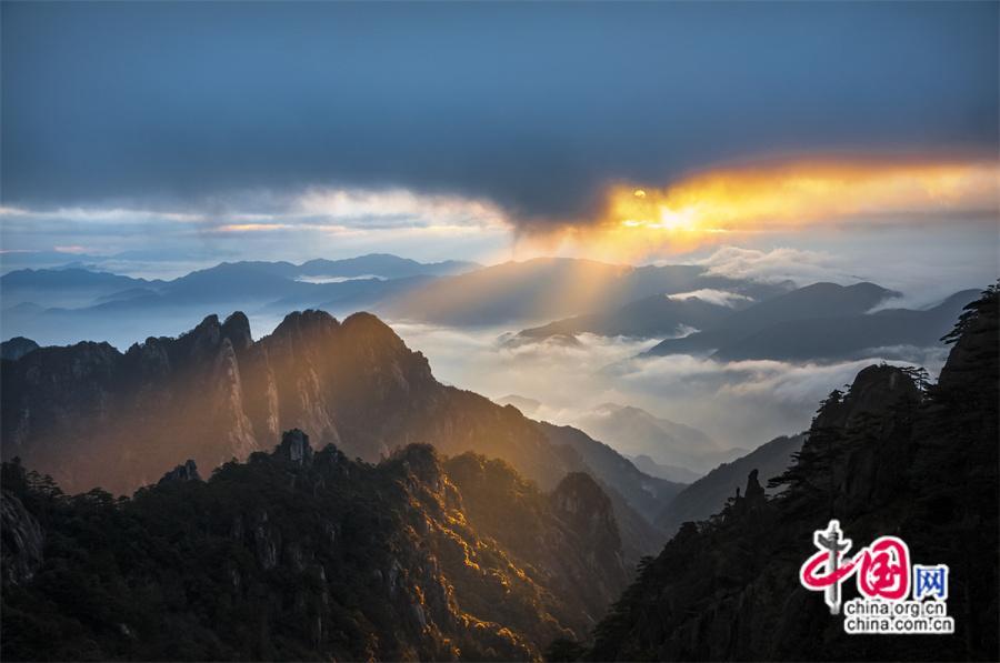 原標(biāo)題:只有一個(gè)黃山:日出霞光盡染 云霧輕舒漫卷