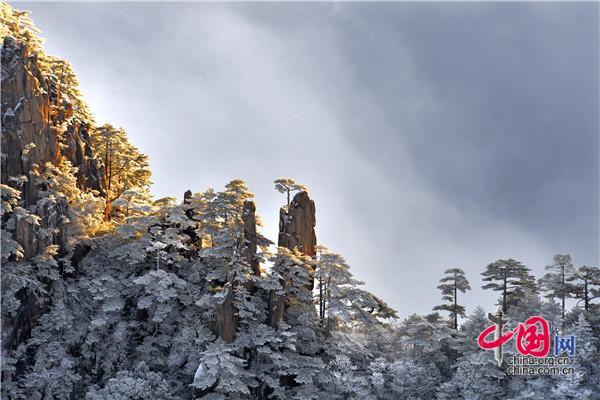 冬天的黃山絕美之處莫不過于雪景、霧凇、日出、云海同時出現(xiàn),1月5日雪后早晨一輪紅日冉冉升起,在陽光的照耀下,放射出萬丈光芒,在群峰間、奇松怪石上散發(fā)著金燦燦的光彩,給冬景增添神奇的色彩,美輪美奐宛如油畫。