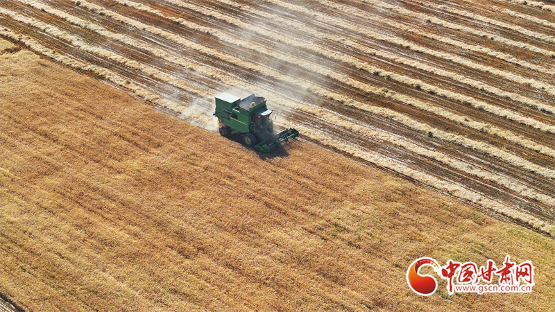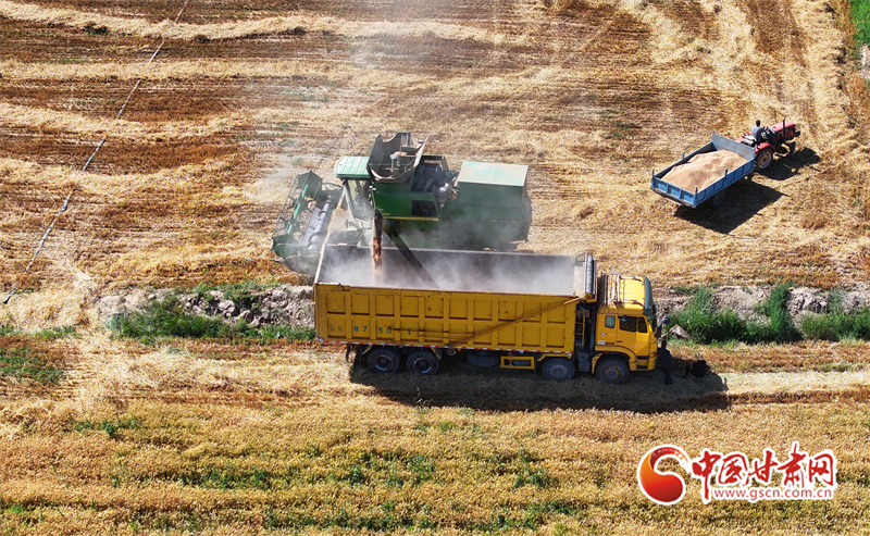 眼下,位于祁連山下的民樂(lè)縣南古鎮(zhèn)毛城村800畝連片小麥種植基地上,機(jī)聲隆隆,農(nóng)機(jī)手們駕駛收割機(jī)穿梭往返麥田之中搶收小麥,一派忙碌的豐收景象。近期,隨著民樂(lè)縣沿祁連山冷涼山區(qū)小麥迎來(lái)成熟季,民樂(lè)縣種植的26萬(wàn)畝小麥進(jìn)入了繁忙的收割期。