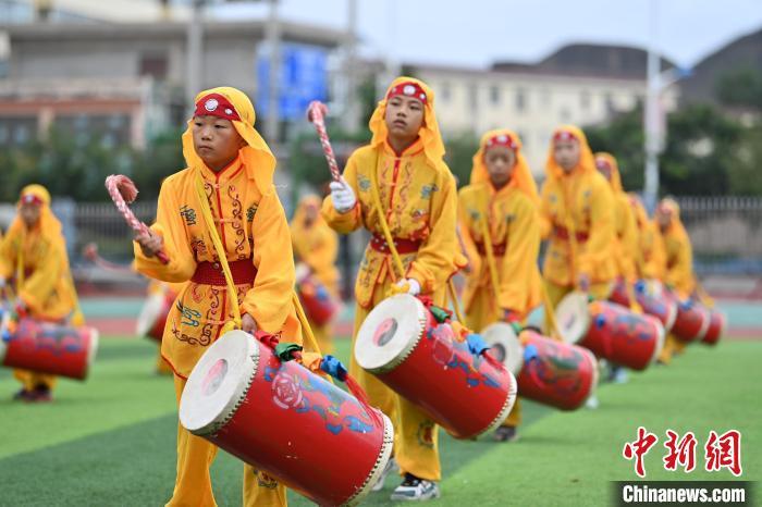 9月9日,甘肅省蘭州市皋蘭縣三川口學(xué)校學(xué)生練習(xí)蘭州太平鼓。近年來,皋蘭縣將國家級非物質(zhì)文化遺產(chǎn)蘭州太平鼓納入各中小學(xué)課后服務(wù)內(nèi)容,成立中小學(xué)太平鼓隊13支,定期邀請非遺傳承人走進校園,進行傳統(tǒng)文化授課和培訓(xùn),使學(xué)生親身感受中華優(yōu)秀傳統(tǒng)文化的魅力。蘭州太平鼓舞已有六百余年的歷史,素有“天下第一鼓”之稱,2006年被列入中國第一批非物質(zhì)文化遺產(chǎn)名錄。中新社記者 九美旦增 攝