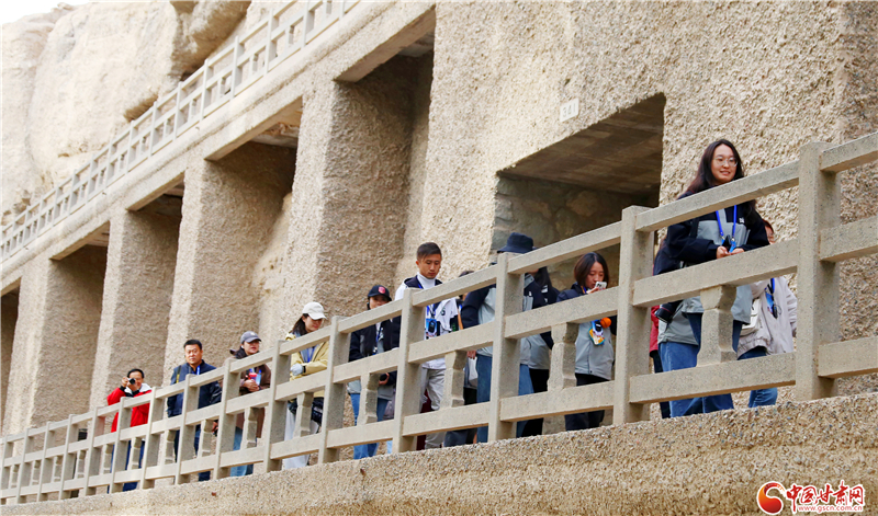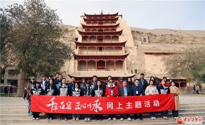 10月20日,由中央網(wǎng)信辦網(wǎng)絡(luò)傳播局指導(dǎo),甘肅省委網(wǎng)信辦、甘肅省文物局主辦,中國(guó)甘肅網(wǎng)、快手甘肅承辦的“千年石窟 匠心傳承”網(wǎng)上主題活動(dòng)來(lái)到敦煌,來(lái)自中央及省市縣各級(jí)網(wǎng)絡(luò)媒體記者、商業(yè)平臺(tái)編輯、網(wǎng)絡(luò)名人等組成的采訪團(tuán)走進(jìn)莫高窟,近距離感知佛教文化、全方位了解文化遺產(chǎn)保護(hù),續(xù)寫甘肅石窟故事。
