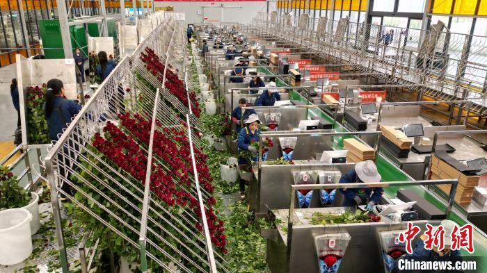 近年來(lái),當(dāng)?shù)靥岢?ldquo;打造魅力花都、建設(shè)公園城市”,聚焦“浪漫經(jīng)濟(jì)”,大力發(fā)展鮮切花產(chǎn)業(yè)。交通便利、人力資源富集是吸引這座“超級(jí)玫瑰工廠”國(guó)際鮮花港落戶臨夏的主因。
