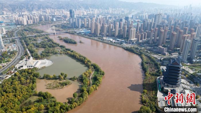 2024年10月31日,黃河蘭州段兩岸的斑斕秋色?!?無(wú)人機(jī)照片) 九美旦增 攝