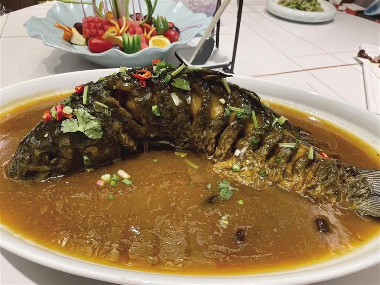 “黃河大鯉魚、蘭州糟肉、麻辣肉、老蘭州燴菜這些都是隴菜中的必點菜式!”董巖向記者介紹了店里的招牌菜:黃河宏豐鯉魚王,魚肉質鮮嫩細膩、營養(yǎng)豐富,在隴菜傳統(tǒng)烹飪技法中,紅燒黃河鯉魚堪稱經(jīng)典做法,搭配廚師精致的排盤,色澤紅亮的魚身與青蔥翠綠相互映襯,香氣撲鼻,令人垂涎欲滴。蘭州糟肉在隴菜中是一道極具特色的傳統(tǒng)名菜,每逢佳節(jié),它更是成為蘭州人家餐桌上必不可少的一道佳肴,承載著濃濃的節(jié)日氛圍和家的味道。精選肥瘦相間的五花肉,經(jīng)過刀工、糟鹵腌制、放入蒸鍋中蒸熟等一系列操作,肉質變得軟爛,肥而不膩,糟香四溢。當入口品嘗時,那濃郁的糟香味瞬間在口中散開,與五花肉的醇厚口感完美搭配,相得益彰,讓人回味無窮。