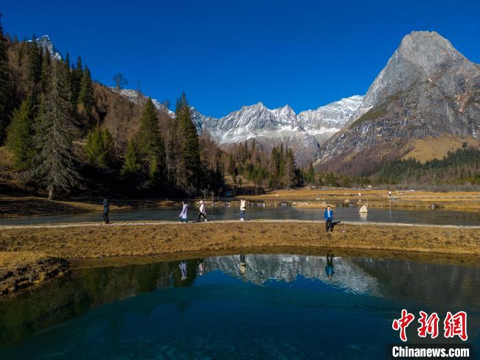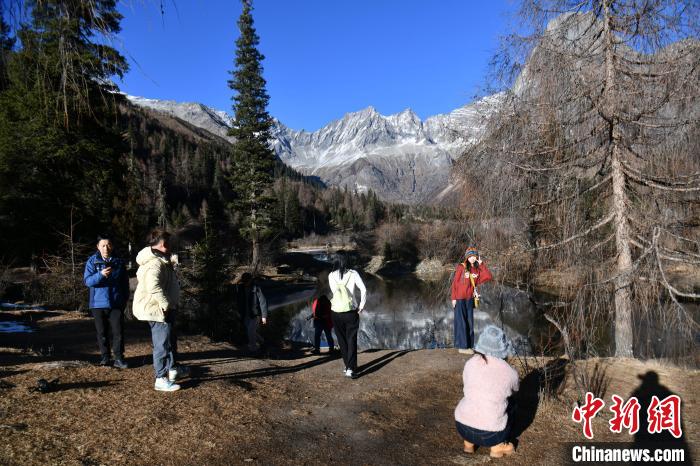 12月2日,位于四川省阿壩州小金縣的四姑娘山雙橋溝吸引游客游覽。隨著冬季到來(lái),四姑娘山雙橋溝多座山峰被皚皚白雪覆蓋,紅葉、雪山倒映在清澈的湖面形成一幅美麗畫卷,冰雪旅游逐漸火熱。中新社記者 張浪 攝