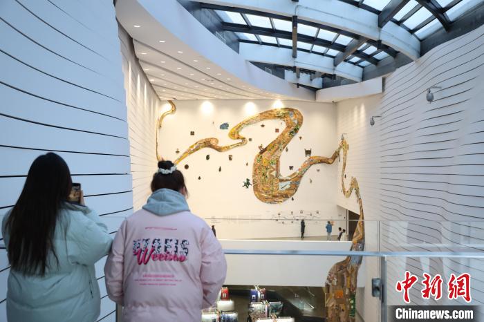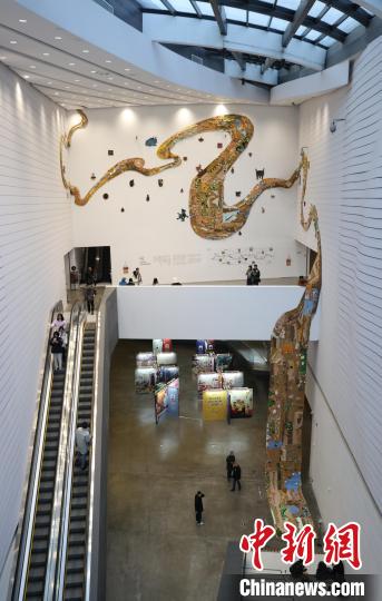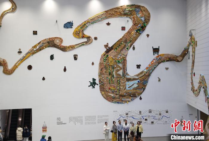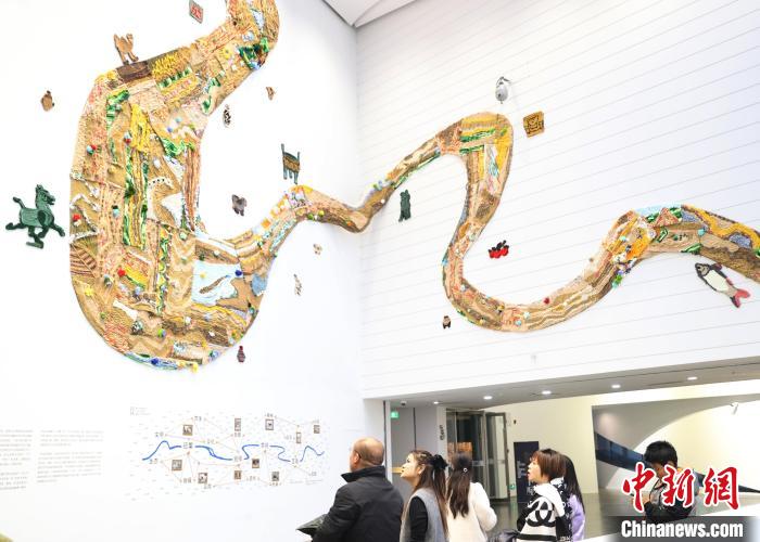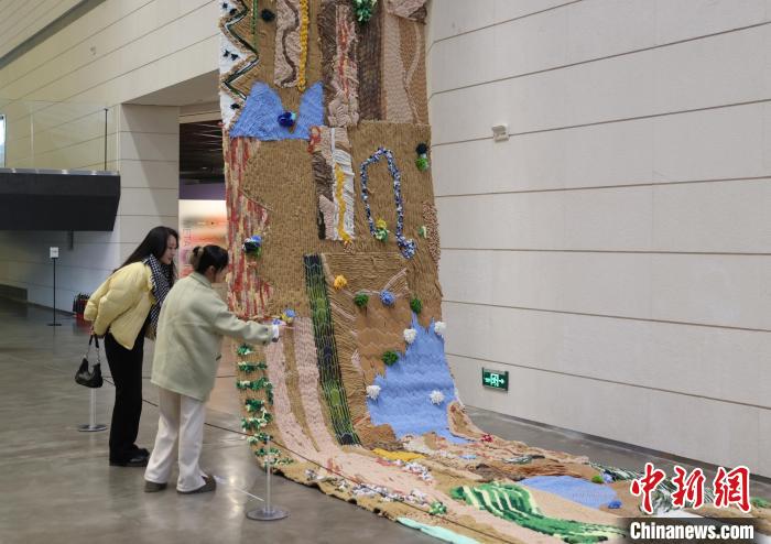 12月8日,市民在寧夏銀川當(dāng)代美術(shù)館欣賞“奔流的舞姿:藝起織造母親河”藝術(shù)展。當(dāng)日,“奔流的舞姿:藝起織造母親河”公益項(xiàng)目藝術(shù)展在銀川當(dāng)代美術(shù)館正式對(duì)公眾開放。該項(xiàng)目匯聚了黃河兩岸200余位織手的巧作,按照黃河特點(diǎn)和視覺審美拼接和織造,織造出一個(gè)極具視覺效果的“大河”,通過(guò)藝術(shù)的橋梁,展示奔涌黃河的優(yōu)美舞姿和不息精神,同時(shí)激發(fā)社會(huì)各界對(duì)黃河生態(tài)保護(hù)的共識(shí)與行動(dòng)。中新社記者 于晶 攝