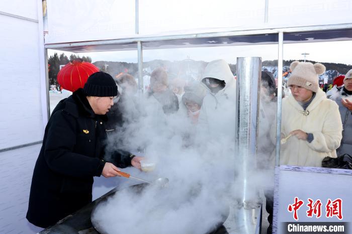 除了豐富的冰雪游樂(lè)項(xiàng)目,北極村七星廣場(chǎng)還設(shè)有非遺民俗文化展區(qū)和東北特色美食區(qū),讓游客們?cè)趨⑴c冰雪活動(dòng)的同時(shí),還能欣賞樺樹皮畫、手工編織等具有地方特色的非物質(zhì)文化作品,品嘗江水燉江魚、鐵鍋燉大鵝等東北特色美食。