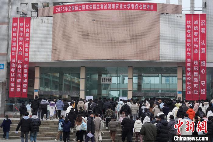 12月21日,2025年全國碩士研究生招生考試初試開考,眾多考生來到湖南農(nóng)業(yè)大學(xué)考點參考。據(jù)教育部數(shù)據(jù)顯示,2025年全國碩士研究生報名人數(shù)為388萬,相比去年下降50萬人,已是連續(xù)兩年報名人數(shù)下降。圖為志愿者將椅子與取暖設(shè)備送入考場。中新社記者 楊華峰 攝