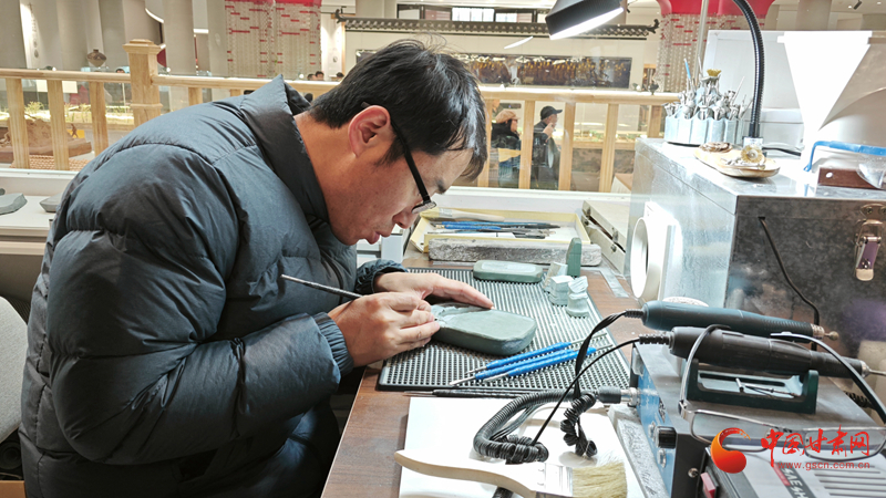 在動(dòng)態(tài)展演區(qū)域,多位非遺傳承人現(xiàn)場(chǎng)創(chuàng)作,吸引了大量游客駐足觀看。游客和學(xué)生們可以近距離接觸每一項(xiàng)非遺工藝的制作過(guò)程,親眼目睹原材料如何在傳承人的手中變成一件件栩栩如生的藝術(shù)品。