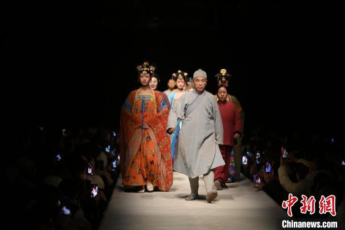 2025年1月9日晚,在甘肅敦煌大型室內情景體驗劇《又見敦煌》劇場內,游人在行走中觀看演出。中新社記者 李亞龍 攝