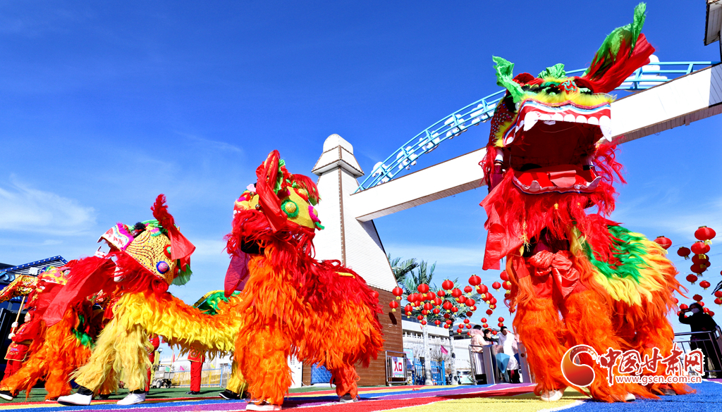 春節(jié)期間,甘肅省張掖市甘州區(qū)一游樂(lè)園內(nèi)熱鬧非凡,張掖云海民俗文化藝術(shù)團(tuán)的演員們舞起祥龍雄獅、敲起威風(fēng)鑼鼓,讓市民和游客在傳統(tǒng)民俗文化的氛圍中歡度春節(jié)假期。