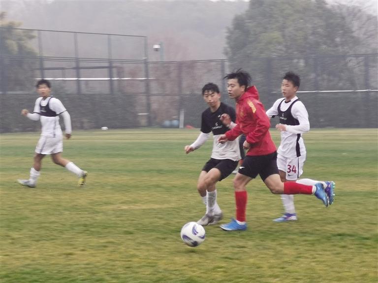 下午兩點(diǎn)多,當(dāng)記者趕到上海東方綠舟體育訓(xùn)練基地球場(chǎng)時(shí),球隊(duì)已經(jīng)在雨中為即將打響的熱身賽做好了準(zhǔn)備。