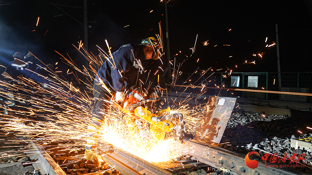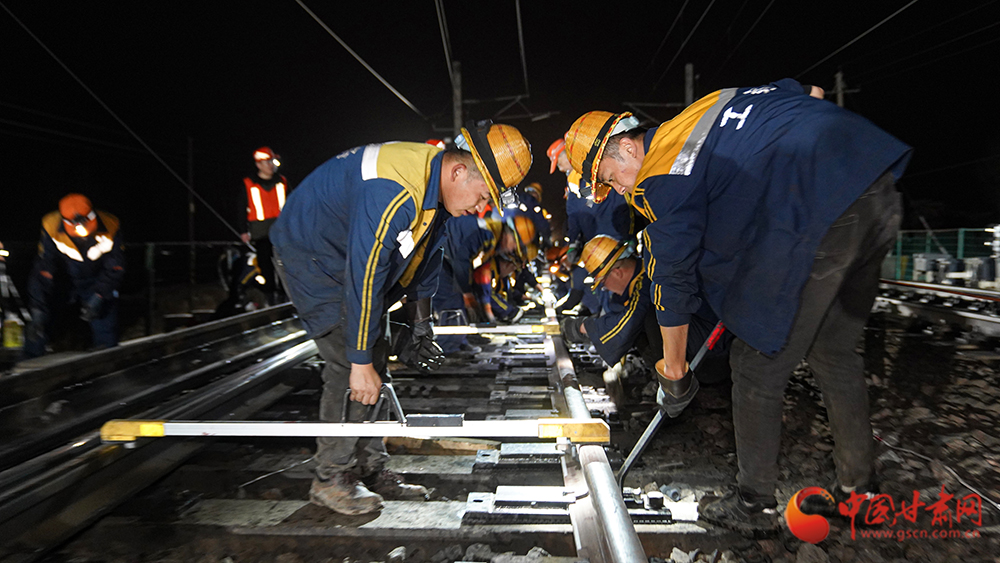 4月13日21時30分,位于河西走廊的蘭新鐵路截河壩站人頭攢動、燈火通明,蘭州鐵路局武威工務(wù)段組織80余名干部職工對站內(nèi)3號道岔軌件進行更換升級。